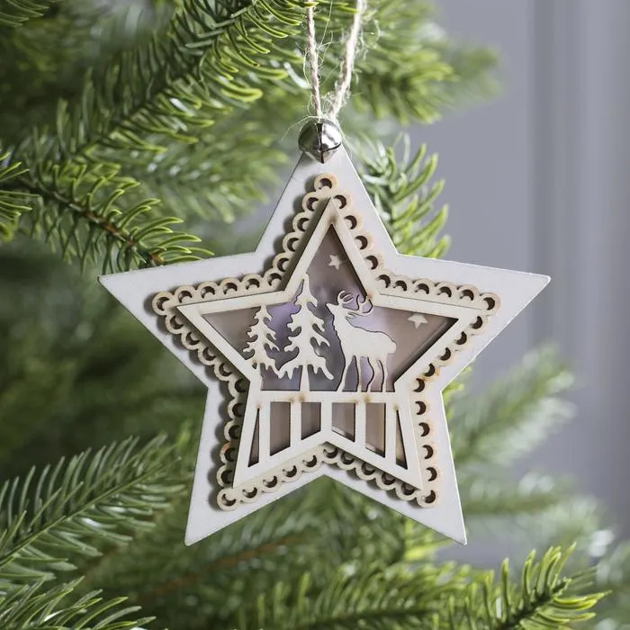 Ёлочная игрушка «Звезда с оленем», от батареек, свечение тёплое белое
