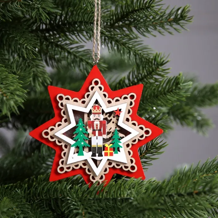 Ёлочная игрушка «Звезда с щелкунчиком», от батареек, свечение тёплое белое — Характеристики