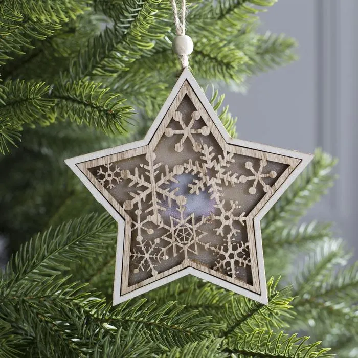 Ёлочная игрушка «Звезда в снежинках», от батареек, свечение тёплое белое