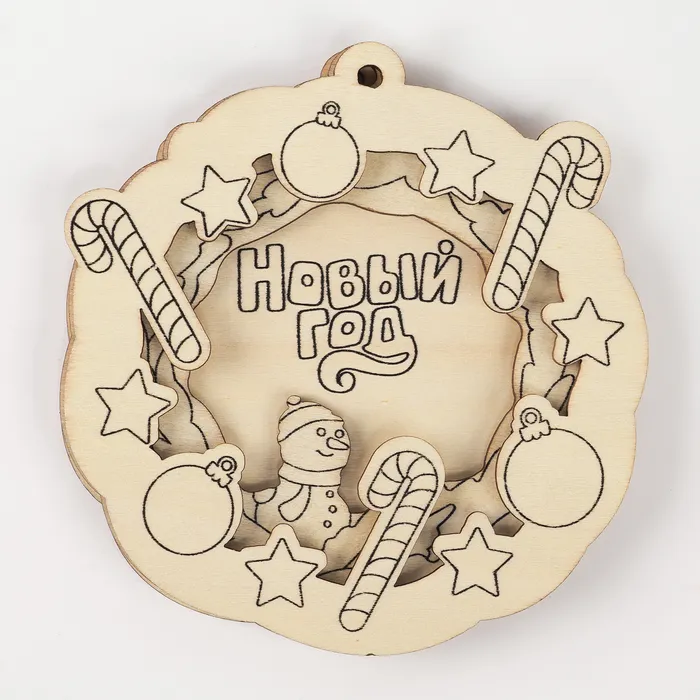 Ёлочная подвеска из дерева своими руками на новый год «Венок», набор для творчества — Характеристики
