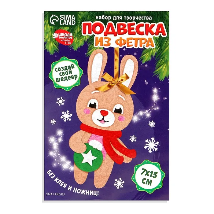 Ёлочная подвеска из фетра своими руками на новый год «Зайка в шарфике», набор для творчества — Характеристики