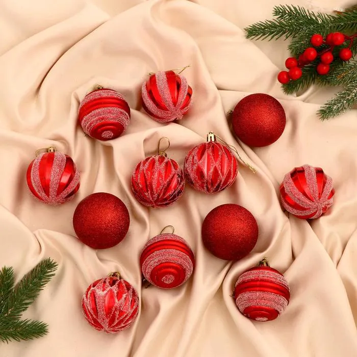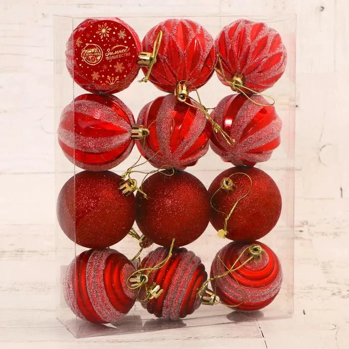 Ёлочнеы игрушки «Краски праздника», шары новогодние, d=6 см, набор 12 шт., полосы, красный — Характеристики