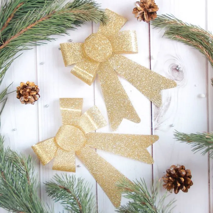 Ёлочный бант — украшение, которое добавляет изысканности в праздничный декор. Его золотистый цвет с формой банта создаёт атмосферу роскоши и праздника. Этот набор подходит для тех, кто хочет подчеркнуть новогоднюю тематику, напоминая о моментах радости и семейного тепла.