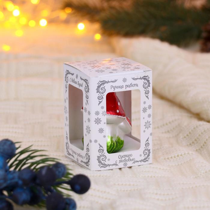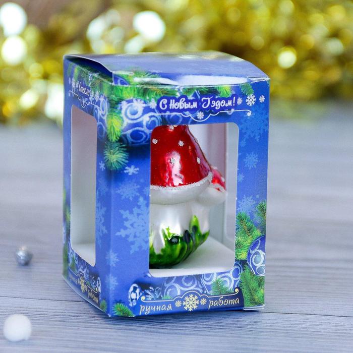 Это украшение превращает ёлку в пространство зимней сказки и семейной атмосферы. Стеклянный гриб с рисунком работает как самостоятельный элемент или часть уже готовой композиции. Используйте его как подарок или как дополнение к традиционному оформлению — он одинаково хорошо усиливает дух Нового года и тепло предпраздничных дней.