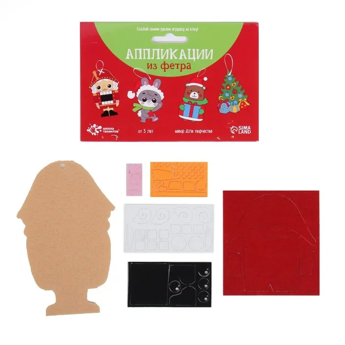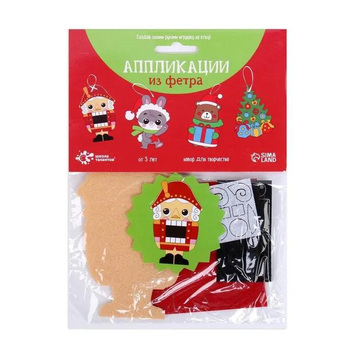 С набором аппликаций из фетра малыш создаст ёлочное украшение на подвесе и познакомится с новым видом творчества.