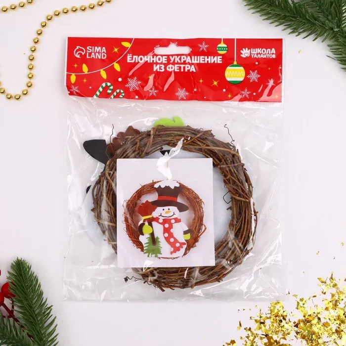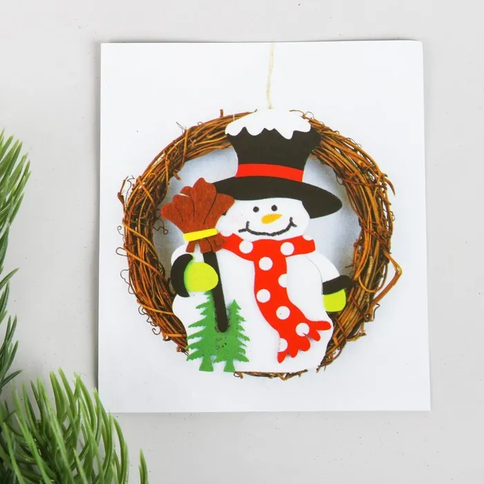 Ёлочное украшение из фетра «Венок и снеговик с метлой», своими руками — Характеристики