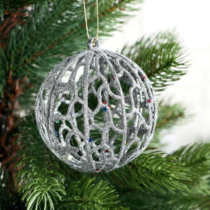 - Материал — стекло — придаёт украшению благородный блеск и глубину, отражая свет гирлянд мягкими бликами.
