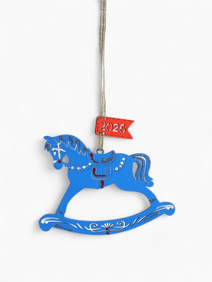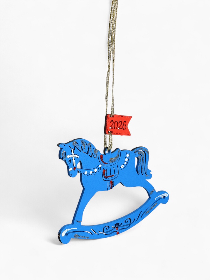 Элегантное новогоднее украшение в форме лошадки станет изысканным дополнением к вашему праздничному декору. С высотой 8,5 см и глубоким синим оттенком, эта игрушка привнесёт в ваш интерьер нотки волшебства и радости, создавая атмосферу уюта и тепла. Резная лошадка символизирует наступающий 2026 год, наполняя дом позитивной энергией и надеждой на лучшее.