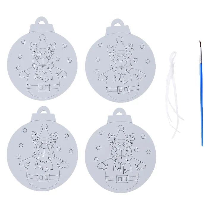 Ёлочное украшение под раскраску «Снег» 4 шт., кисть
