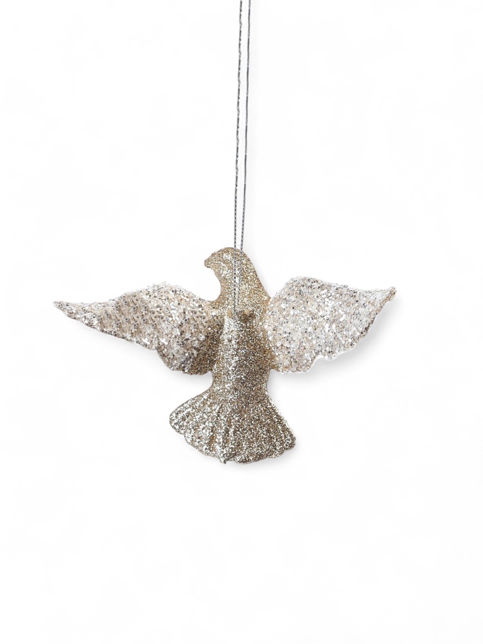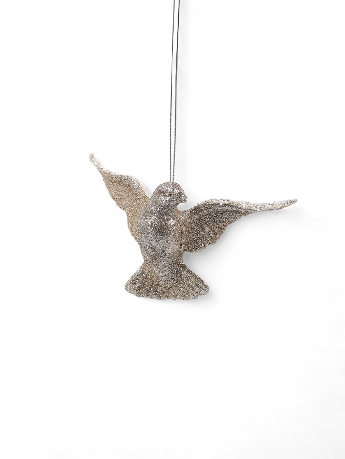 Золотистая ёлочная фигурка голубя размером 8×11 см станет изящным акцентом в новогоднем декоре. Её лаконичный дизайн и тёплый оттенок подчёркивают атмосферу мира и гармонии, добавляя ёлке утончённости и светлого настроения. Лёгкий материал обеспечивает удобство в размещении и долговечность украшения.