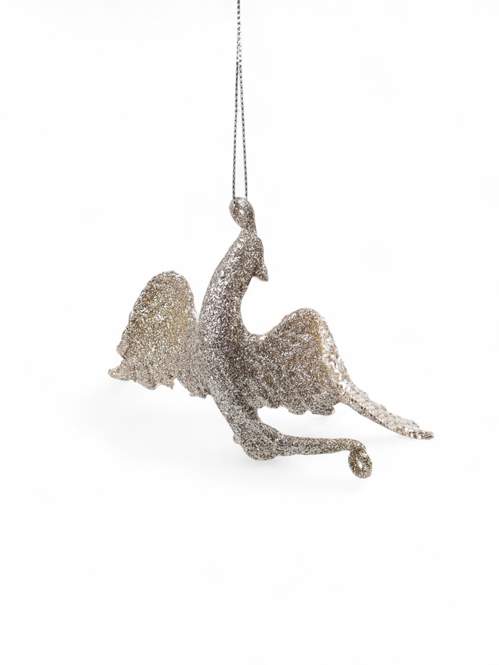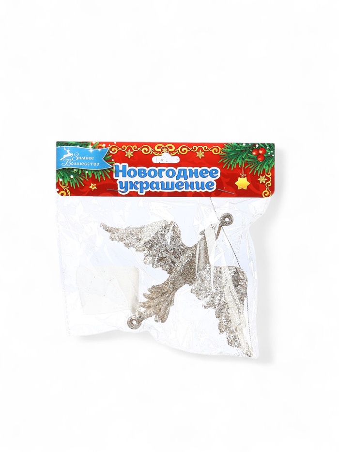 Золотистая ёлочная птица размером 11×14 см станет изящным акцентом в праздничном декоре. Элегантный силуэт и благородный оттенок подчёркивают атмосферу зимних праздников и придают ёлке выразительность. Лёгкий материал облегчает размещение и сохраняет форму украшения на протяжении нескольких сезонов.