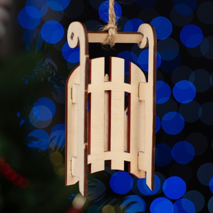 Ёлочное украшение «Санки с драконом», 9.5 см, зеленый, дерево