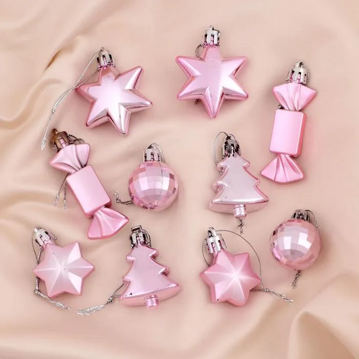 Праздник с нежным акцентом: Эти игрушки становятся частью семейных традиций. Их можно распределить по ёлке, подарочным коробкам или настенным гирляндам. Розовый цвет не теряет актуальности, а матовая текстура добавляет глубину, как зимний рассвет. Набор идеален для тех, кто хочет создать запоминающийся ансамбль без лишней вычурности.