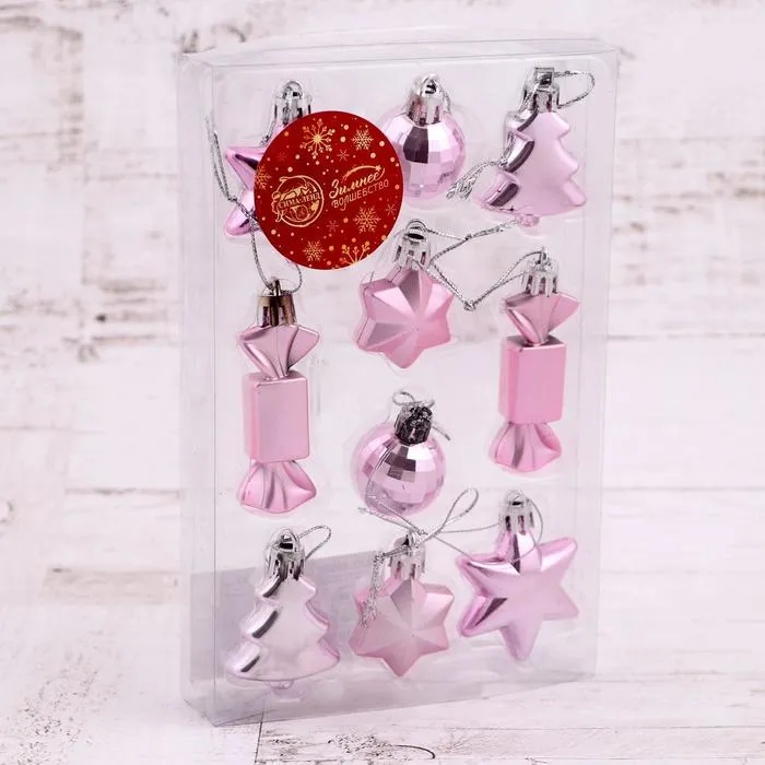 Ёлочные игрушки 10 шт. «Сюрприз», розовый — Характеристики