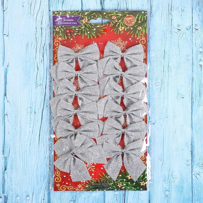 Ёлочные игрушки 12 шт. «Зимнее волшебство. Бантик - блеск» пластик, 4,5х5,5 см, серебро
