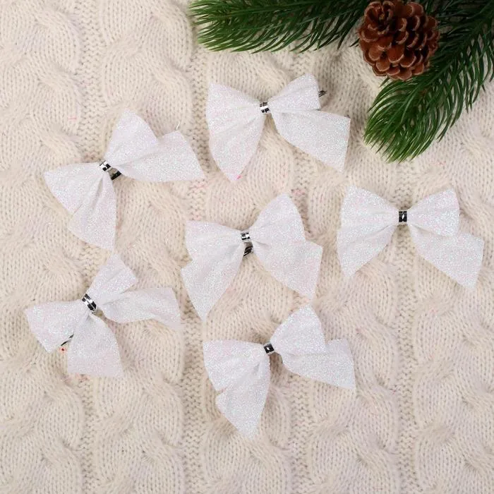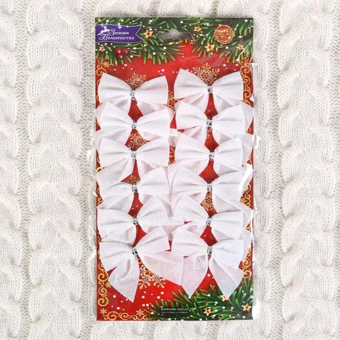 Ёлочные игрушки 12 шт. «Зимнее волшебство. Бантик» пластик, 5.5×5 см, белый — Характеристики