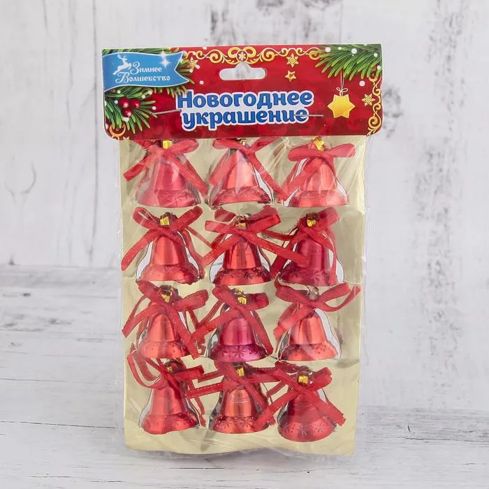 Ёлочные игрушки 12 шт. «Зимнее волшебство. Колокольчики с бантиком» пластик, 2 см, красный позволят украсить новогодний интерьер гармонично и сделать его уникальным и стильным. Также украшения можно использовать и как самостоятельный декор. Такой милый подарок на Новый год обязательно оценят близкие и друзья.
