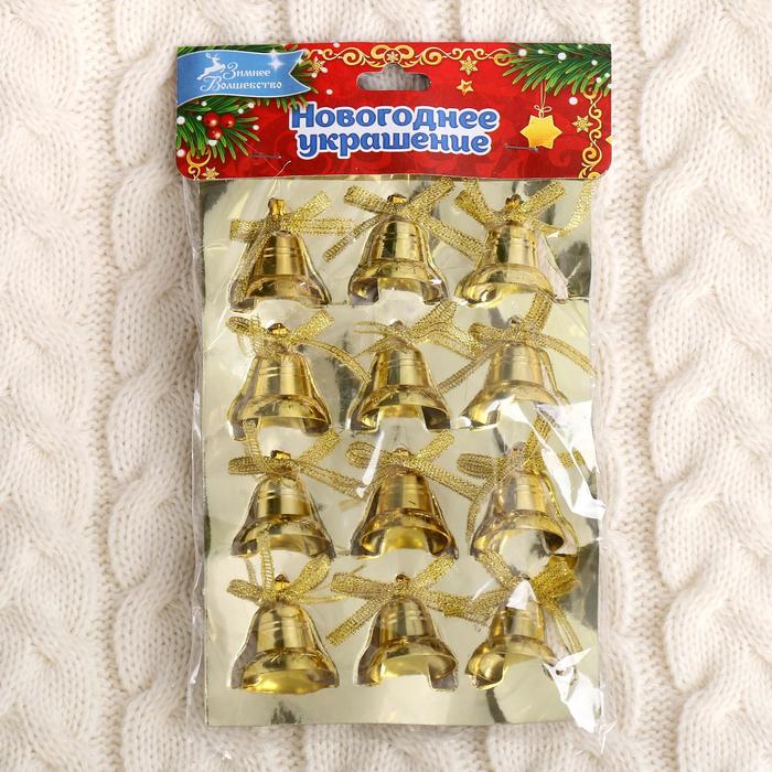 Ёлочные игрушки 12 шт. «Зимнее волшебство. Колокольчики с бантиком» пластик, 2 см, золото можно не только повесить на ёлочку, ими можно преобразить и другие предметы или поверхности. Такой прекрасный подарок по достоинству оценят близкие и друзья.