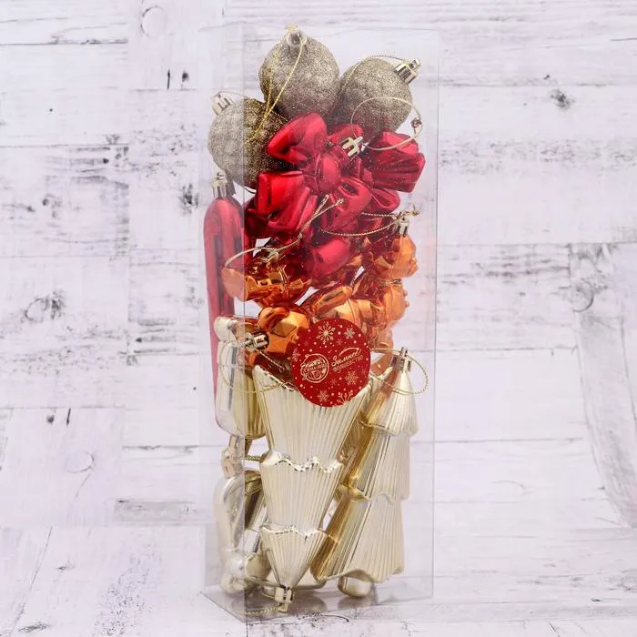 Ёлочные игрушки 18 шт. «Зимнее волшебство. Уют» пластик, золото/красный — Характеристики
