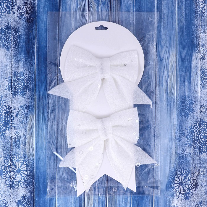 Ёлочные игрушки 2 шт., бантики, «Зимнее волшебство. Бант с пайетками» пластик, 12×12 см, белый — Характеристики