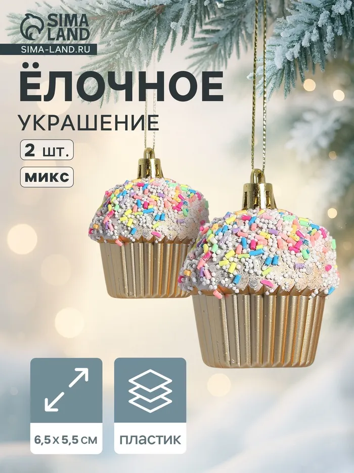 Ёлочные игрушки 2 шт. «Пироженка» 6.5×5.5 см, МИКС — Характеристики