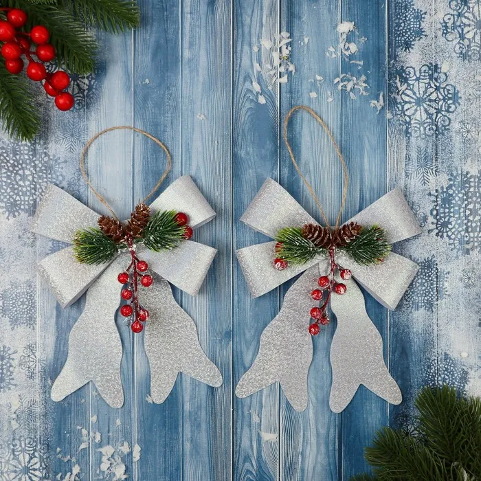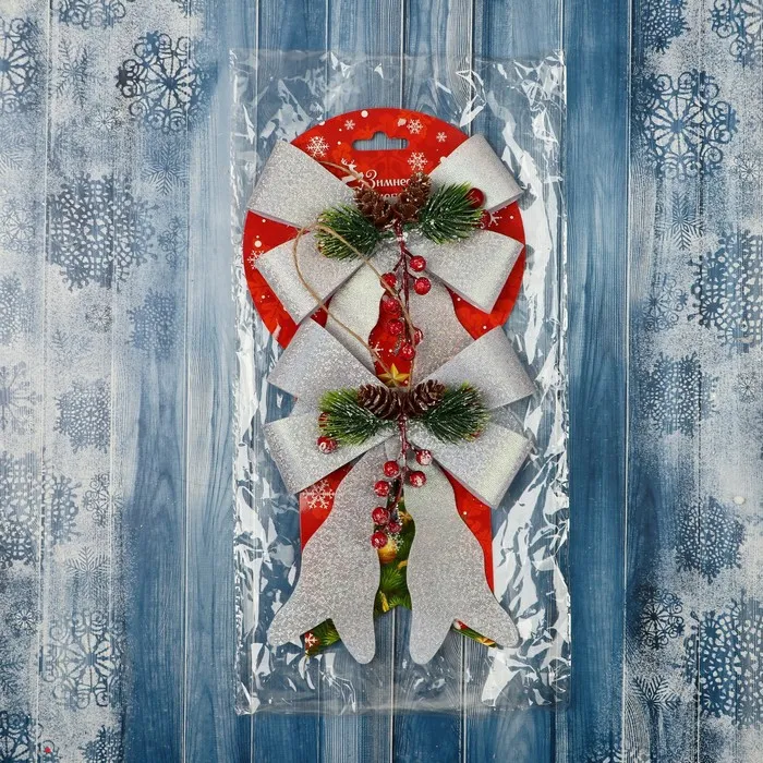 Ёлочные игрушки 2 шт. «Зимнее волшебство. Бант элит» пластик, 12х14 см, белый — Характеристики