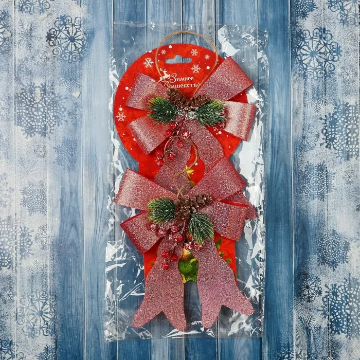 Ёлочные игрушки 2 шт. «Зимнее волшебство. Бант элит» пластик, 12х14 см, розовый — Характеристики