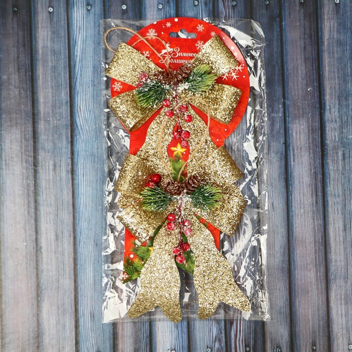 Ёлочные игрушки 2 шт. «Зимнее волшебство. Бант элит» пластик, 12х14 см, золото — Характеристики