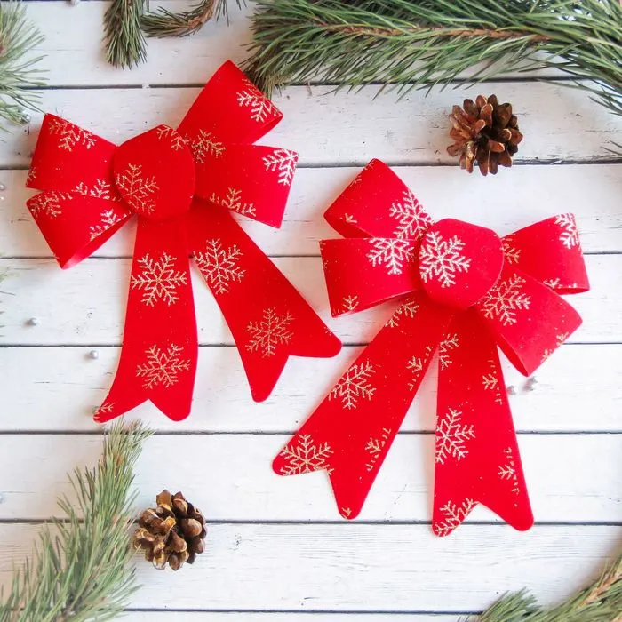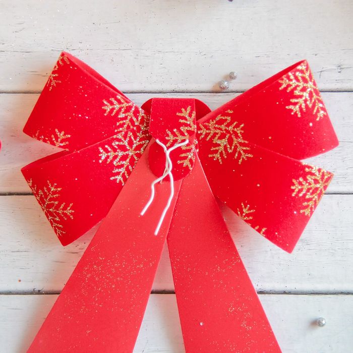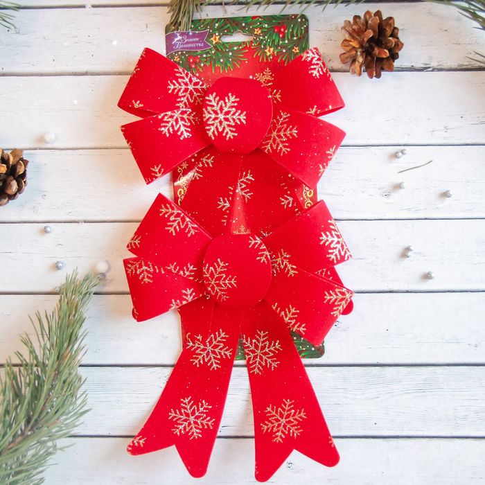 Ёлочные игрушки 2 шт. «Зимнее волшебство. Бант в снежинках» пластик, 14х16 см, красно-золотой — Характеристики