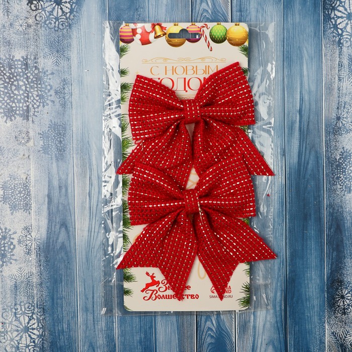 Ёлочные игрушки 2 шт. «Зимнее волшебство. Бантик плетёный» пластик, 15×12 см, красный — Характеристики
