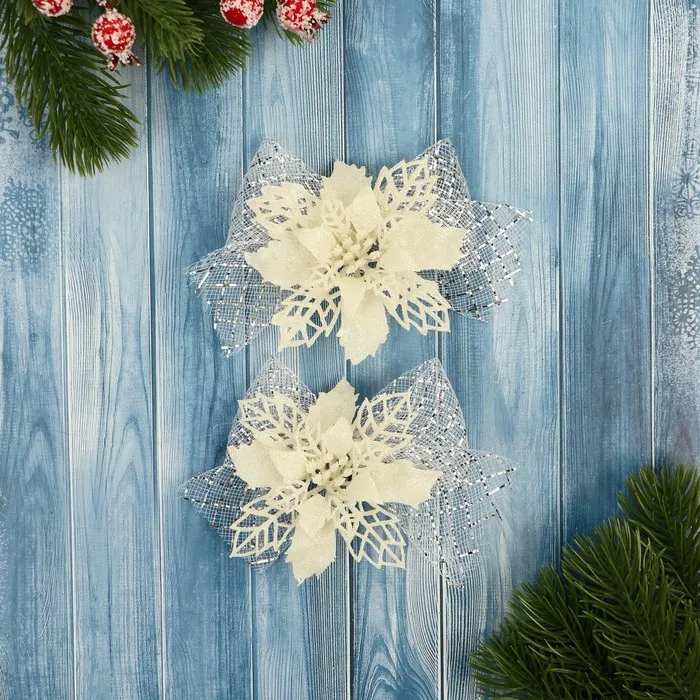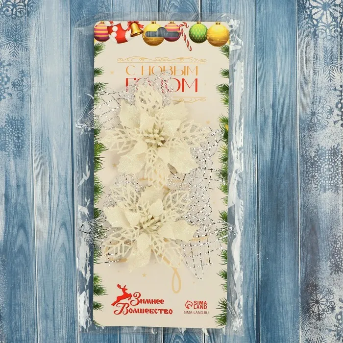 Ёлочные игрушки 2 шт. «Зимнее волшебство. Бантик с цветком» пластик, 11×9 см, белый — Характеристики