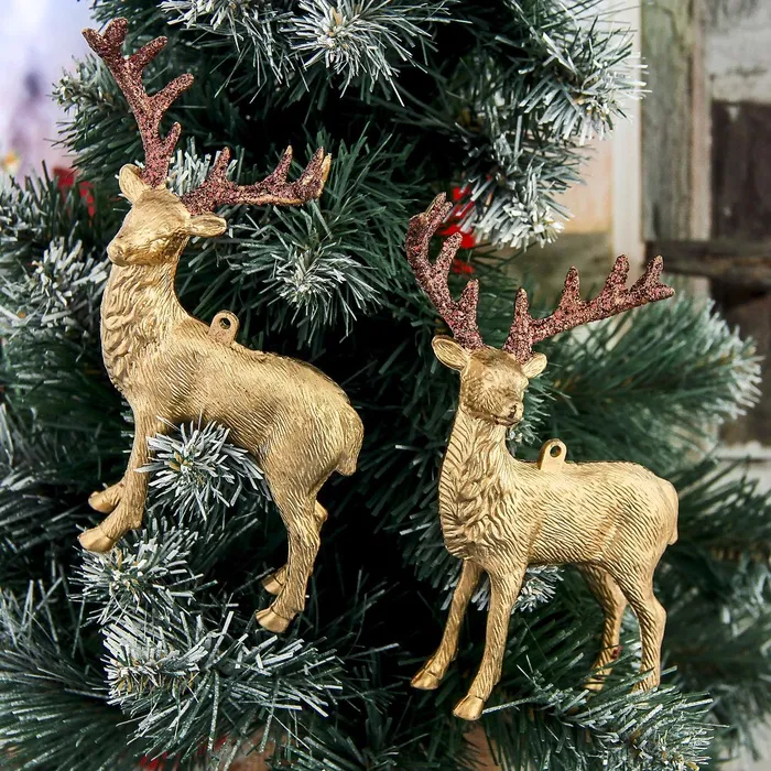 Этот набор выбирают те, кто ценит стиль без излишеств и хочет, чтобы ёлка рассказывала историю. Золотые олени — это не просто украшения, а символы спокойного величия зимнего праздника. Они хорошо сочетаются с матовыми шарами, текстурированным текстилем и деревянными деталями декора. Такие игрушки могут стать началом коллекции или акцентом, который возвращается год за годом.