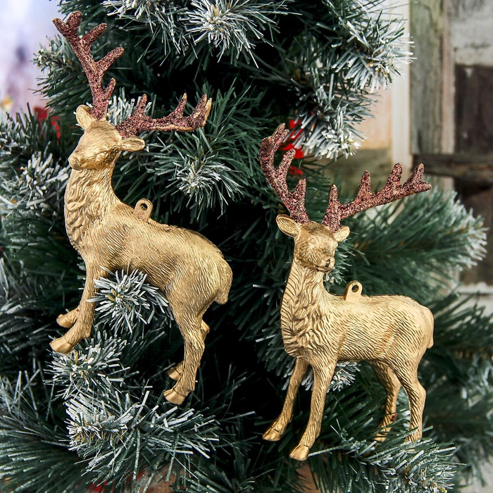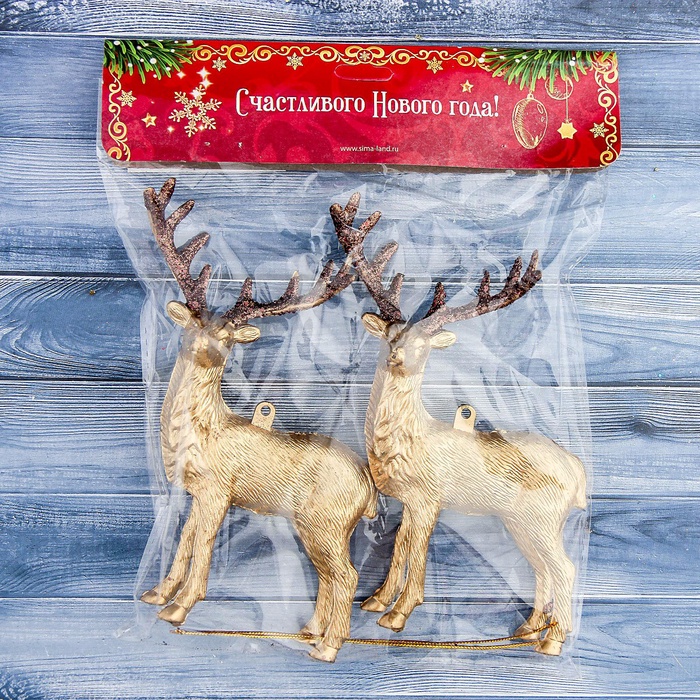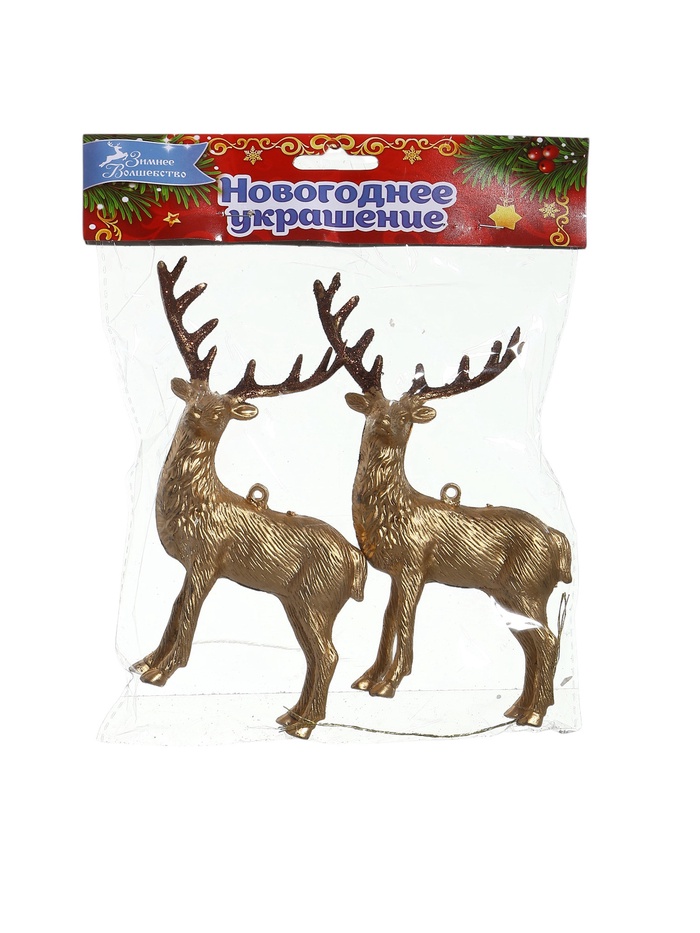 Ёлочные игрушки 2 шт. «Зимнее волшебство. Благородный олень» пластик, 8×15 см, золото — Характеристики
