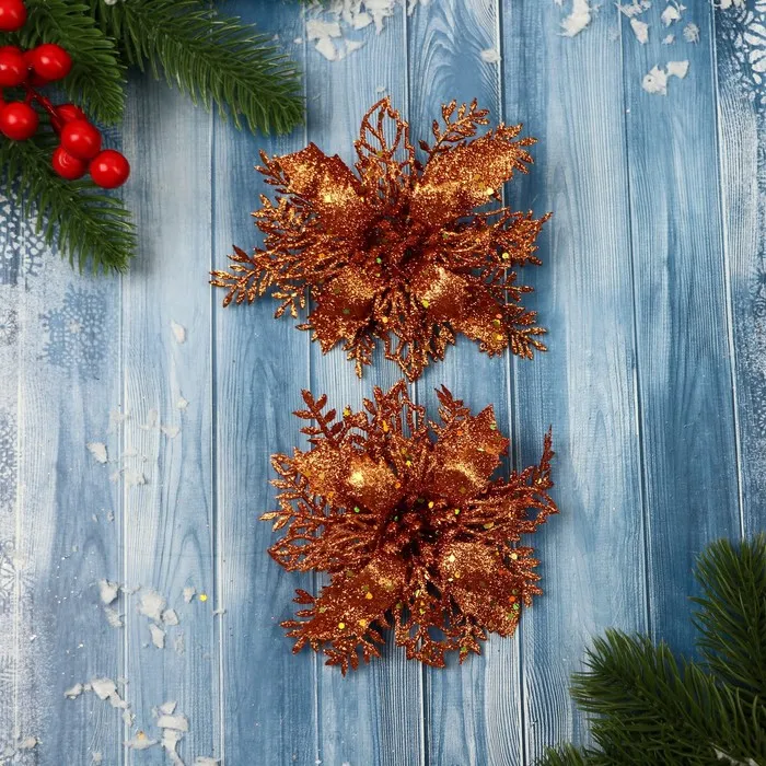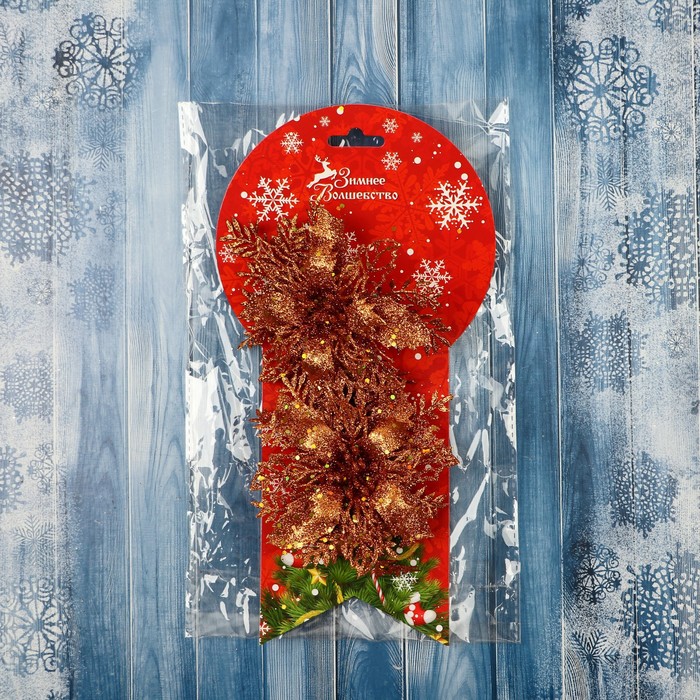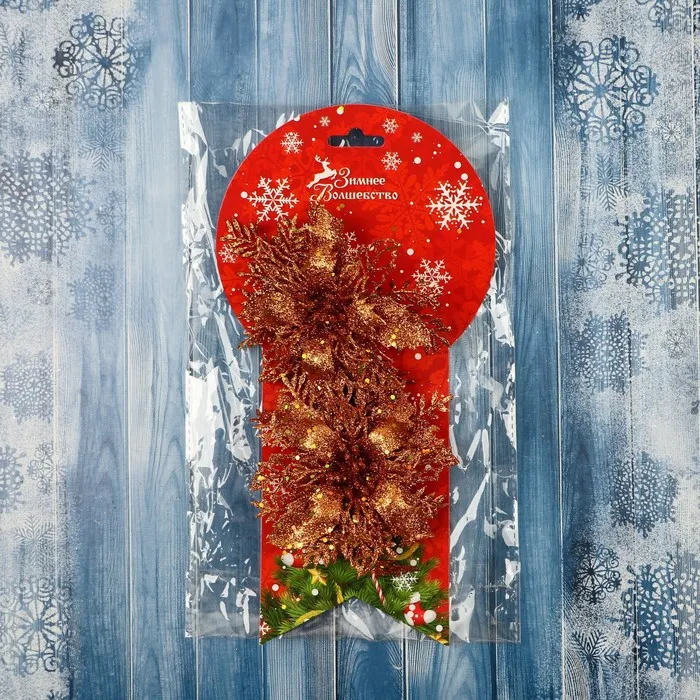 Ёлочные игрушки 2 шт. «Зимнее волшебство. Драгоценный цветок» пластик, с веточками, 12 см, золото — Характеристики