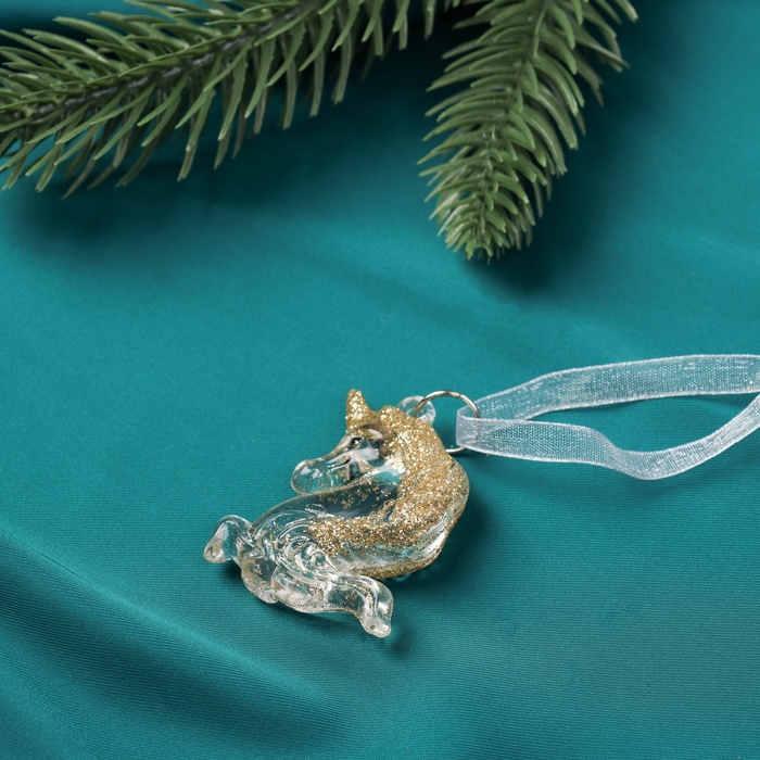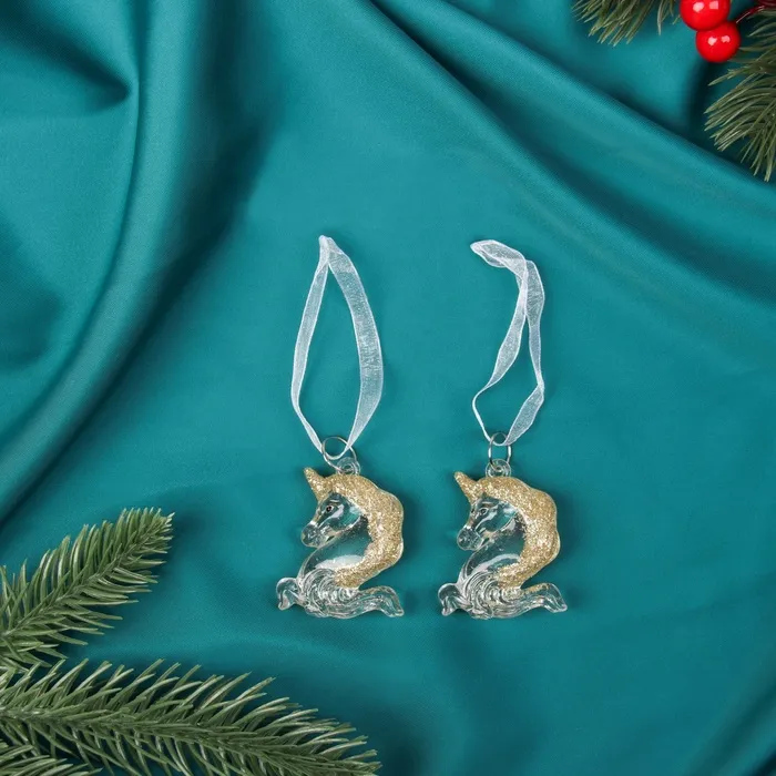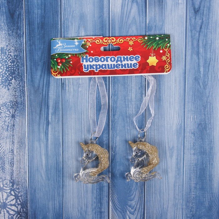 Ёлочные игрушки 2 шт. «Зимнее волшебство. Единорожки » пластик, 4х3,5 см, прозрачный