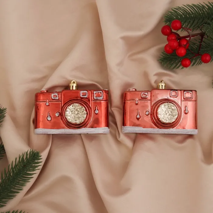 Ёлочные игрушки 2 шт. «Зимнее волшебство. Фотоаппарат» пластик, 9,5х4,5х7 см, красный — Характеристики