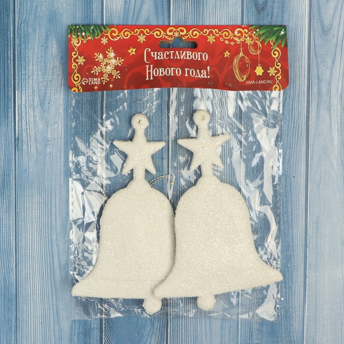 Ёлочные игрушки 2 шт. «Зимнее волшебство. Колокольчик люкс» пластик, 6х10 см, белый — Характеристики