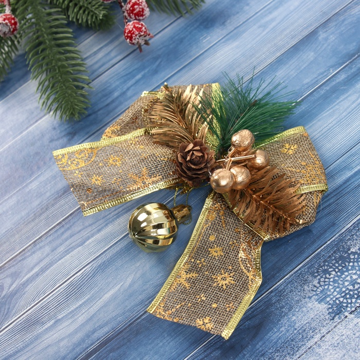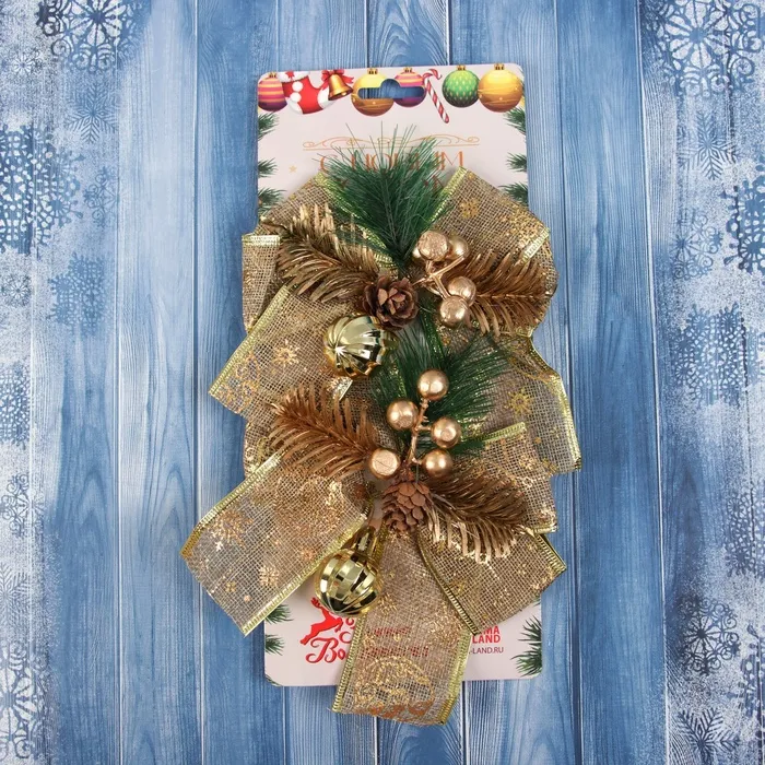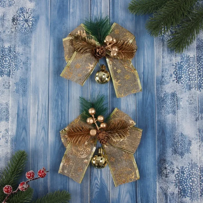 Ёлочные игрушки 2 шт. «Зимнее волшебство. Композиция на бантике» пластик, шарик, 12х15 см — Характеристики