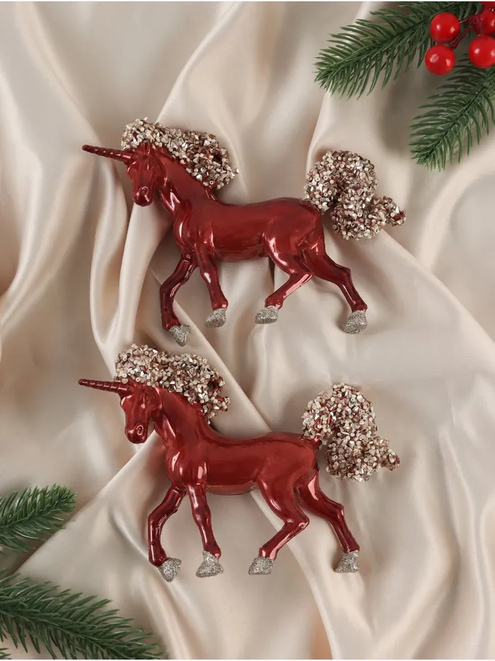 Ёлочные игрушки 2 шт. «Зимнее волшебство. Лошадка Феерия» пластик, 11х15,5 см, красный — Характеристики