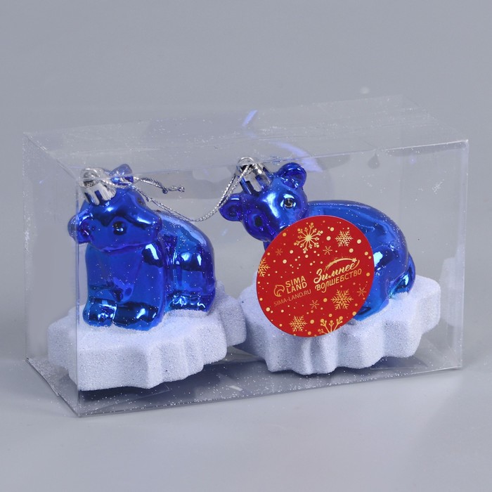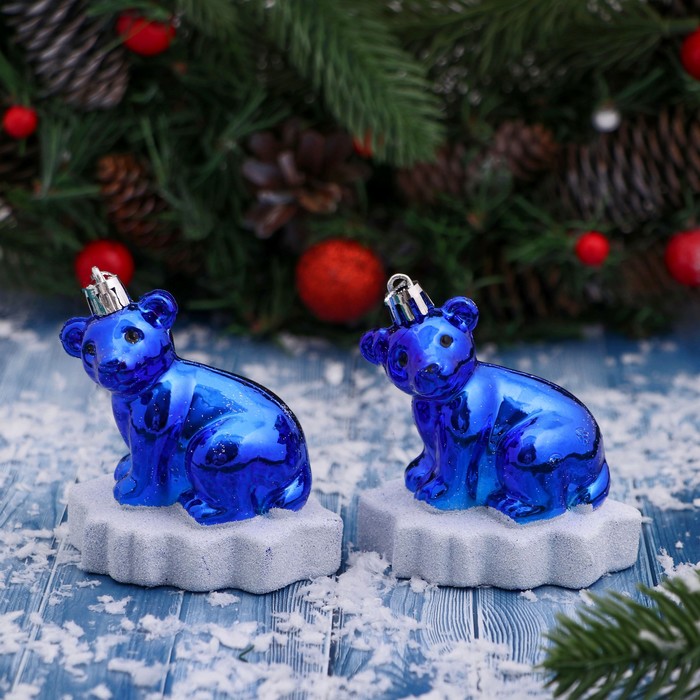 Ёлочные игрушки 2 шт. «Зимнее волшебство. Мишутка на льдине» пластик, 5,5х7,5х8 см, синий — Характеристики