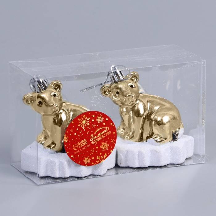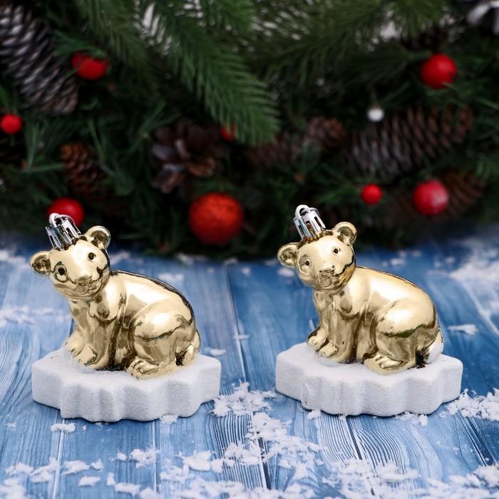 Ёлочные игрушки 2 шт. «Зимнее волшебство. Мишутка на льдине» пластик, 5,5х7,5х8 см, золото