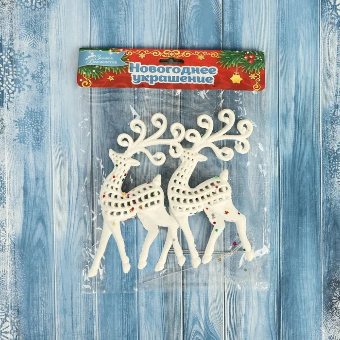 Ёлочные игрушки 2 шт. «Зимнее волшебство. Олень рога узор» пластик, цветные звездочки, 6х11 см, белый