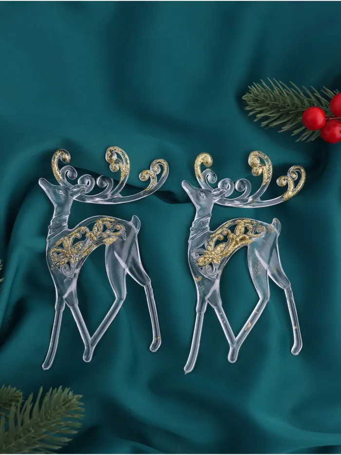 Ёлочная игрушка из прозрачного акрила с мерцанием золотых блёсток преобразит новогоднюю ель, оригинальную подвеску также можно использовать и как самостоятельный элемент праздничного интерьера.