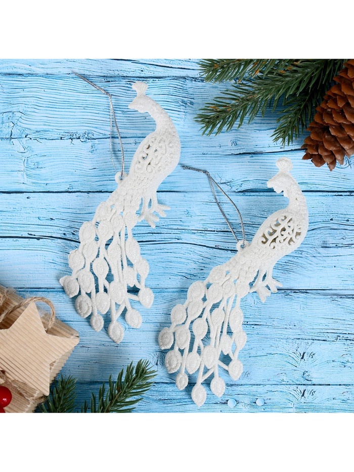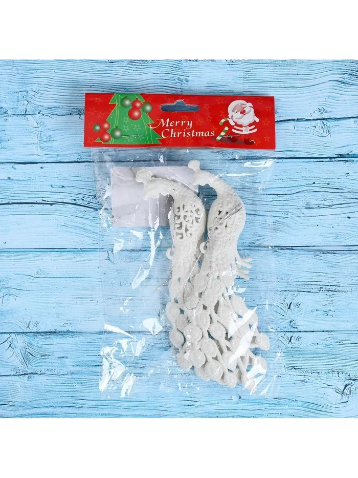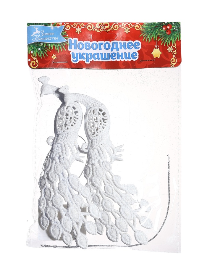 Ёлочные игрушки 2 шт. «Зимнее волшебство. Павлин» пластик, 5.5×16 см, белый — Характеристики