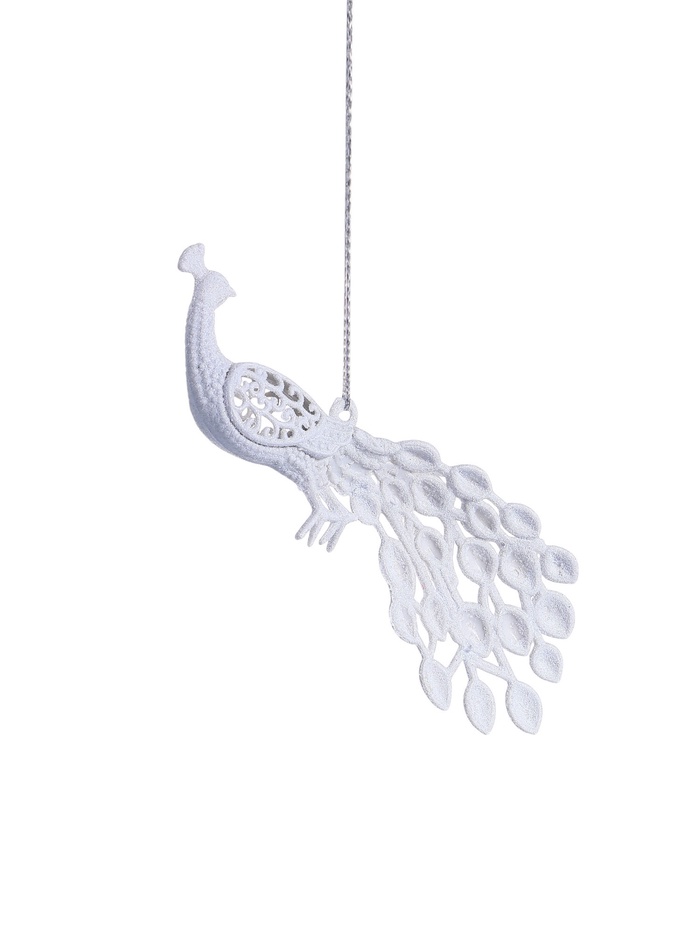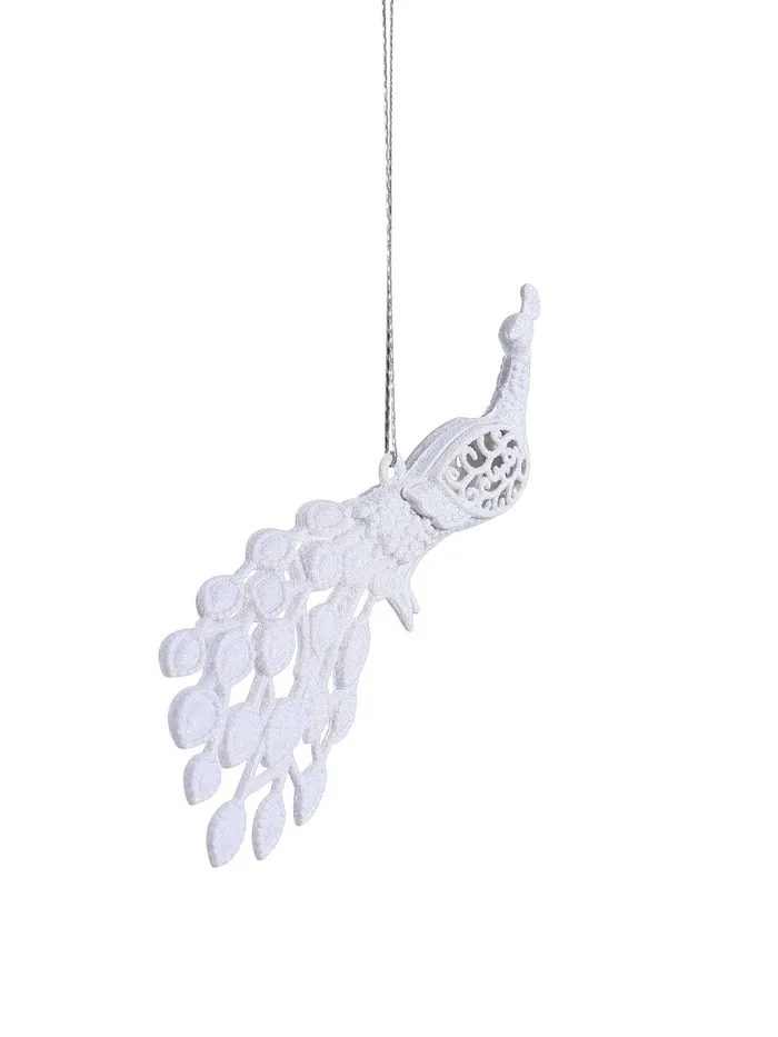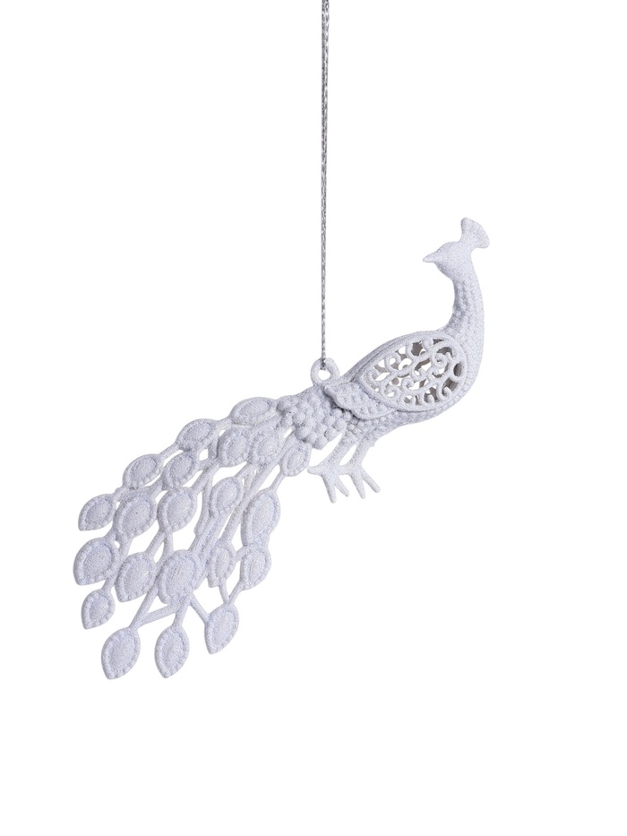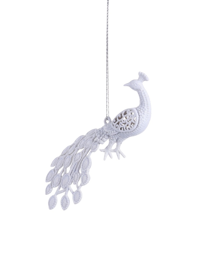 Новогодний набор из двух ёлочных игрушек в виде белых павлинов — это элегантный акцент для праздничной ёлки. Высокие фигурки (16 см) с резным узором добавляют декору нотку торжественности и утончённости, оставаясь при этом лёгкими и воздушными. Такой комплект подойдёт тем, кто украшает ёлку с вниманием к стилю и деталям.
