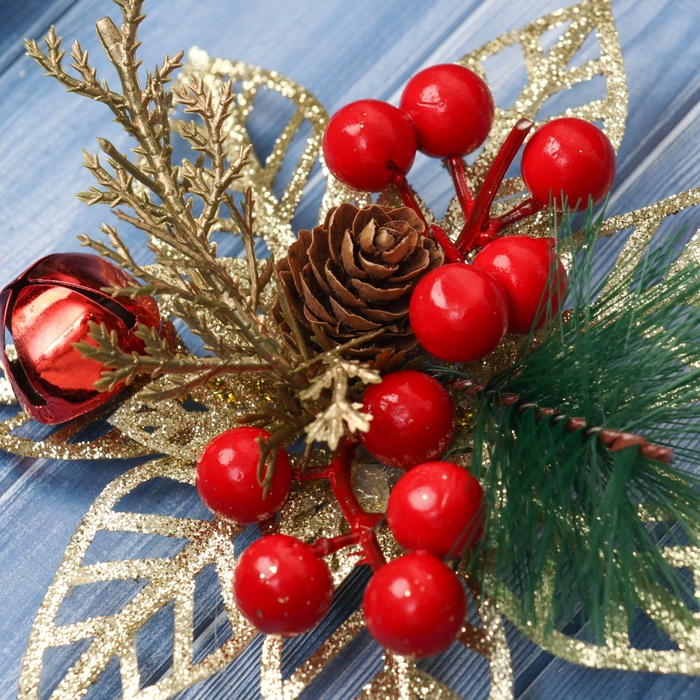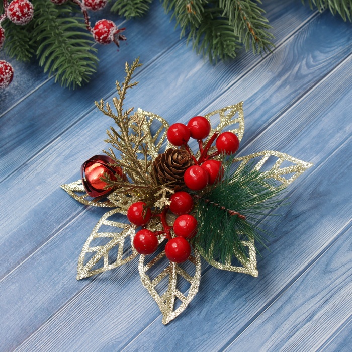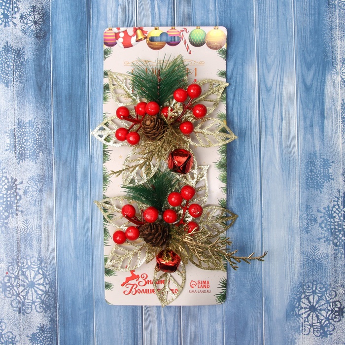 Ёлочные игрушки 2 шт. «Зимнее волшебство. Праздничные цветы» пластик, ягоды, 12 см, золото — Характеристики