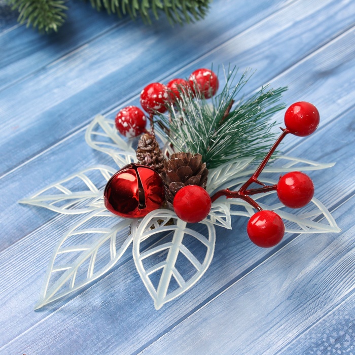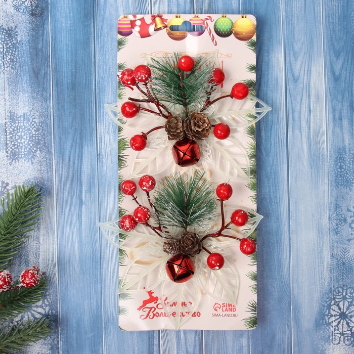 Ёлочные игрушки 2 шт. «Зимнее волшебство. Праздничные цветы» пластик, ягоды, 13 см, белый