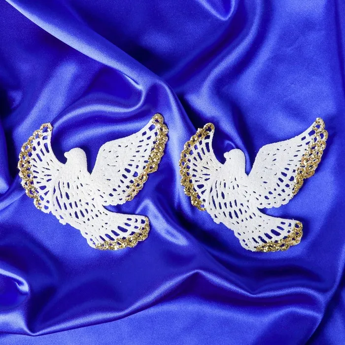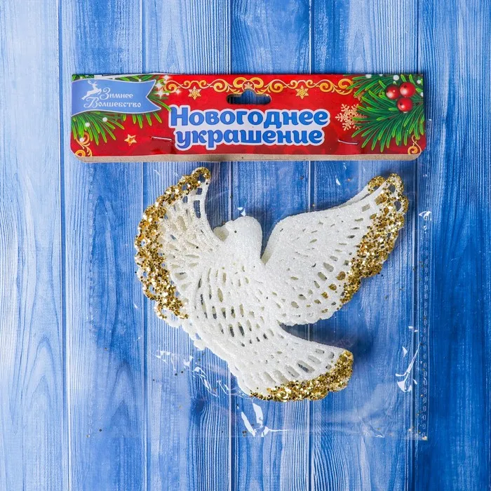 Новогодние игрушки в виде бело-золотых птиц — это изысканный акцент для праздничной ёлки. Две объёмные фигурки (12х12 см) с резным узором создают ощущение зимнего великолепия без лишней яркости. Подходят как для классического декора, так и для современного оформления в торжественных тонах.