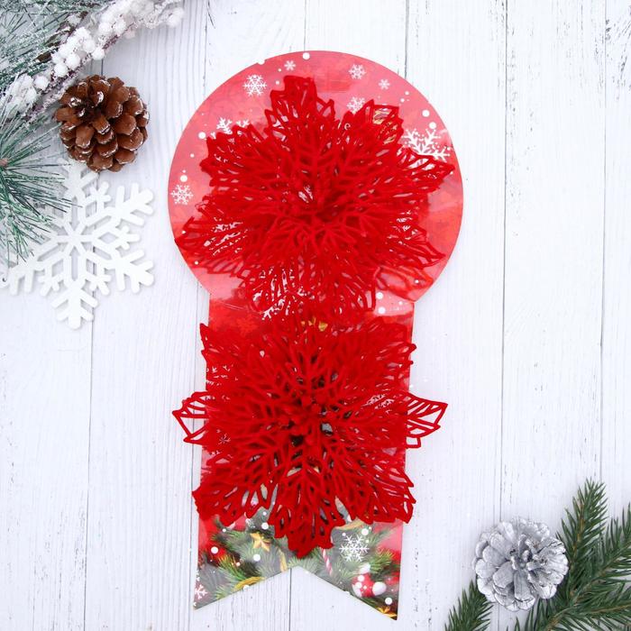 Ёлочные игрушки 2 шт. «Зимнее волшебство. Резной цветок» пластик, 8.5 см, красный — Характеристики