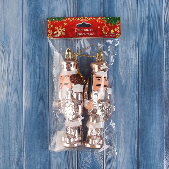 Ёлочные игрушки 2 шт. «Зимнее волшебство. Щелкунчик» пластик, 14×3 см, золото — Характеристики